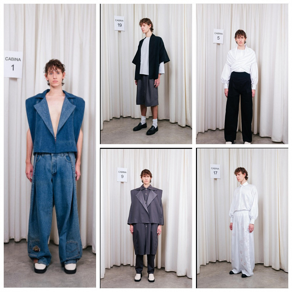Довольно экстравагантное видение современной мужской моды, однако в данной коллекции также прослеживаются современные тренды: тотал деним, монохром.